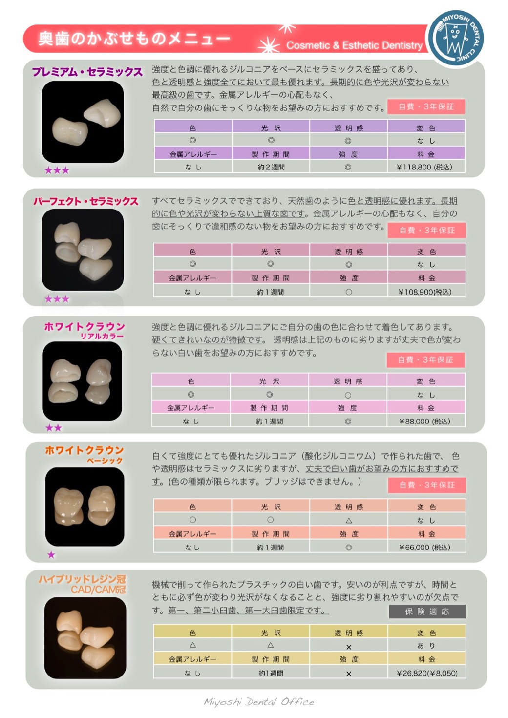 ◎歯1本あたり ¥3,300