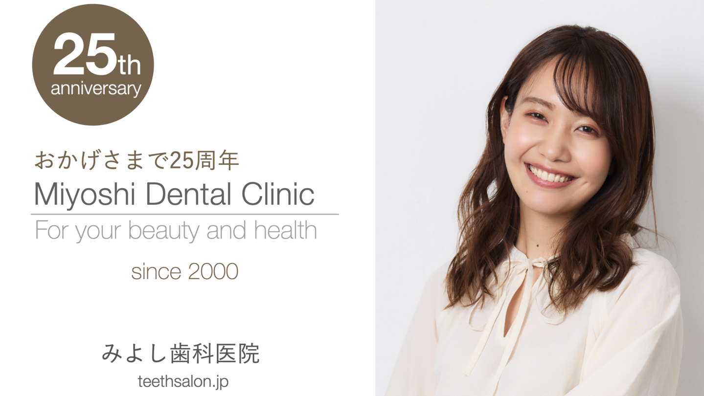 みよし歯科医院は、おかげさまで25周年を迎えました。小さな時から治療していた子供達が大人になり自分の子供を連れて来てくれるようになりました。とても感慨深いものです。これからも皆様が笑顔でおいしく食事ができ、美しく健康に過ごせるように皆様の『美と健康』のお手伝いをさせていただきます。