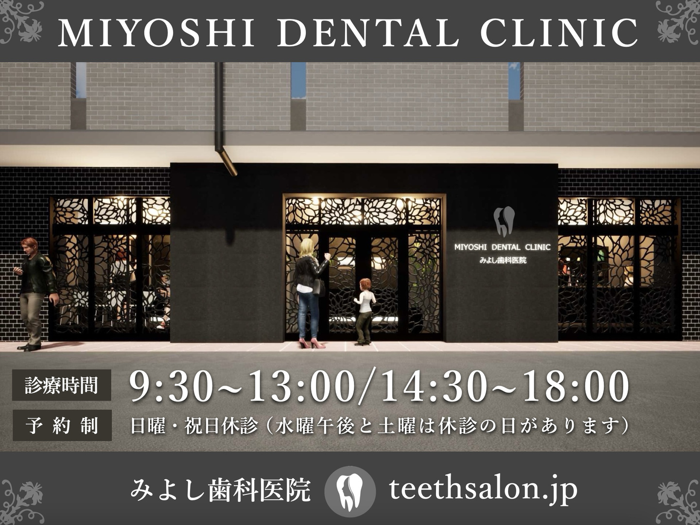 みよし歯科医院では、笑顔でおいしく食事ができ、美しく健康に過ごせるように皆様の『お口の美と健康』のお手伝いをさせていただきます。