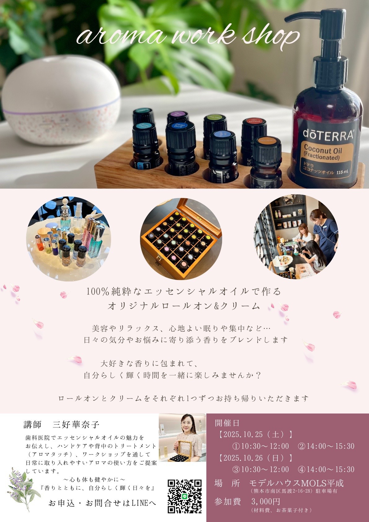 10月25日(土)-26日(日)にアロマワークショップを開催します。オリジナルロールオン&クリームにご自分に合った最適なアロマをご提案
