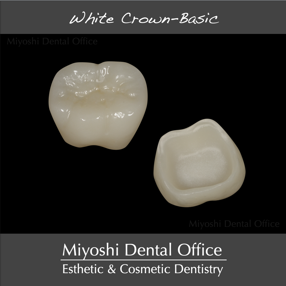 白くて強度にとても優れたジルコニア(酸化ジルコニウム)で作られた歯で、 色や透明感はセラミックス・インレーに劣りますが、とても丈夫で白い歯がお望みの方におすすめです。(厚みが必要なので奥歯におすすめします。)