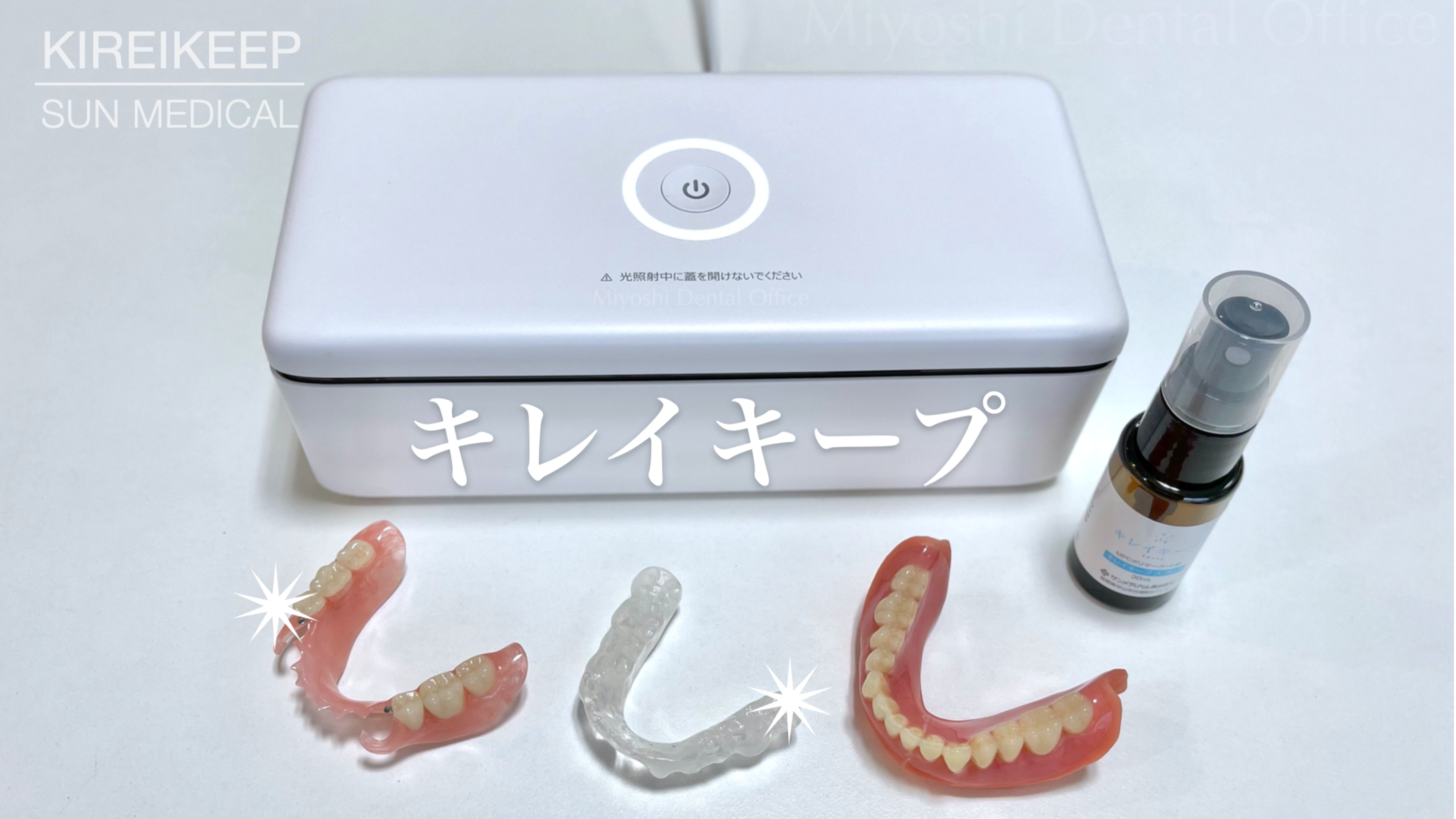 キレイキープは、入れ歯などの樹脂製装置への汚れの付着を抑制する効果を持つコーティングシステムです。