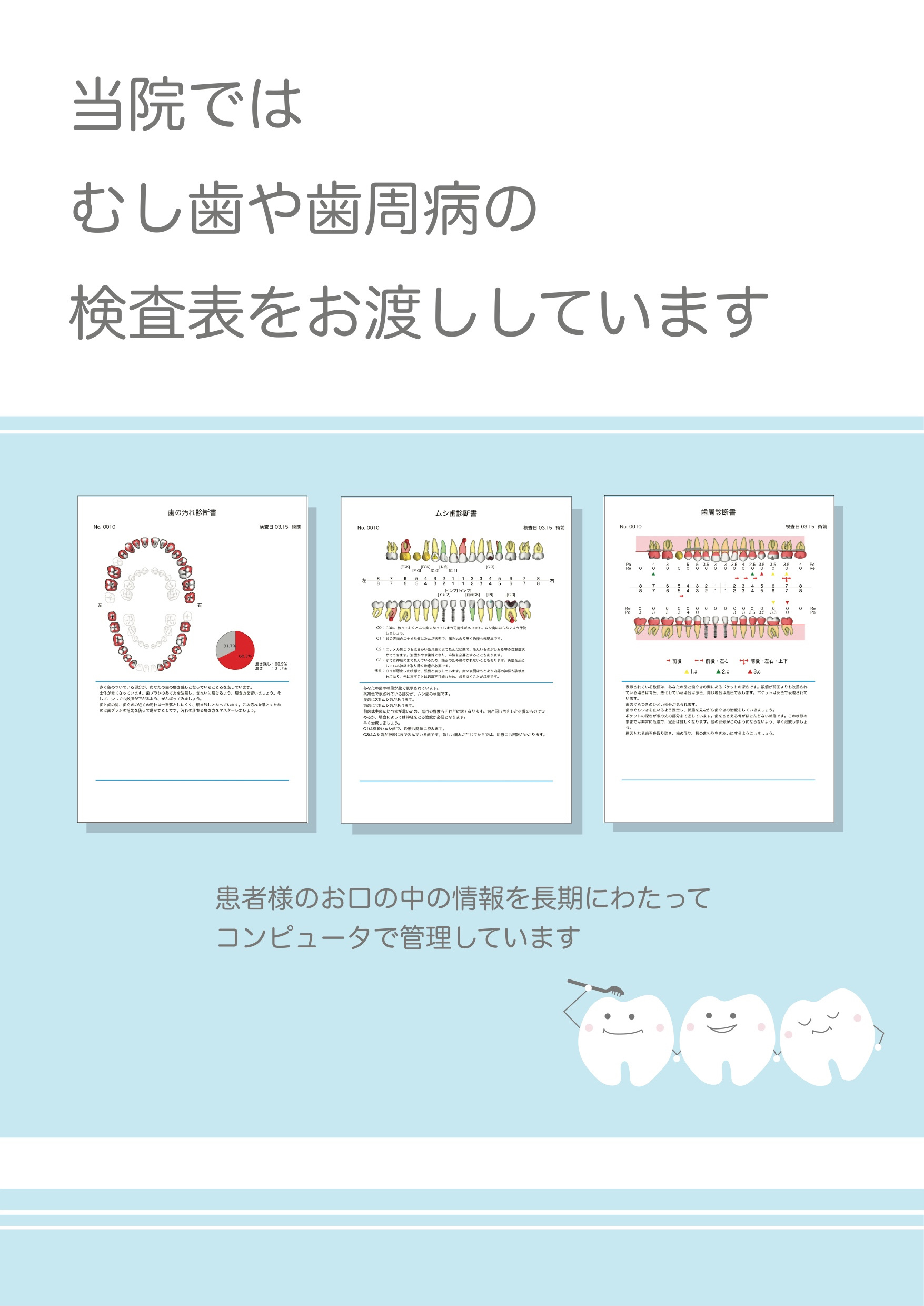 【説明文書】『わかりやすい歯科治療』のためにお口の中の状態や、検査結果、治療計画などを文書でお渡しします。