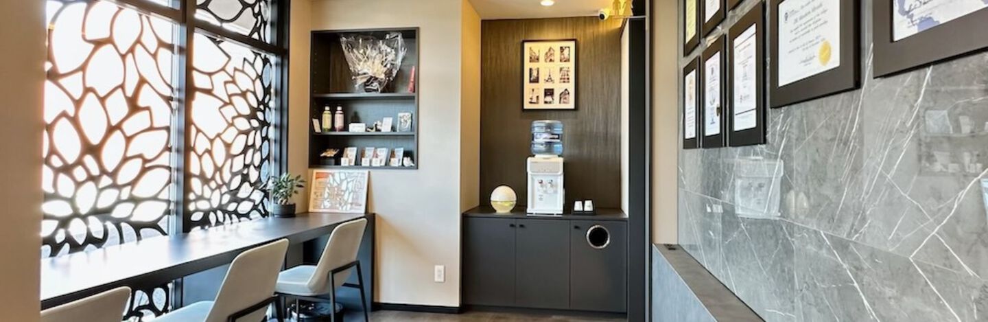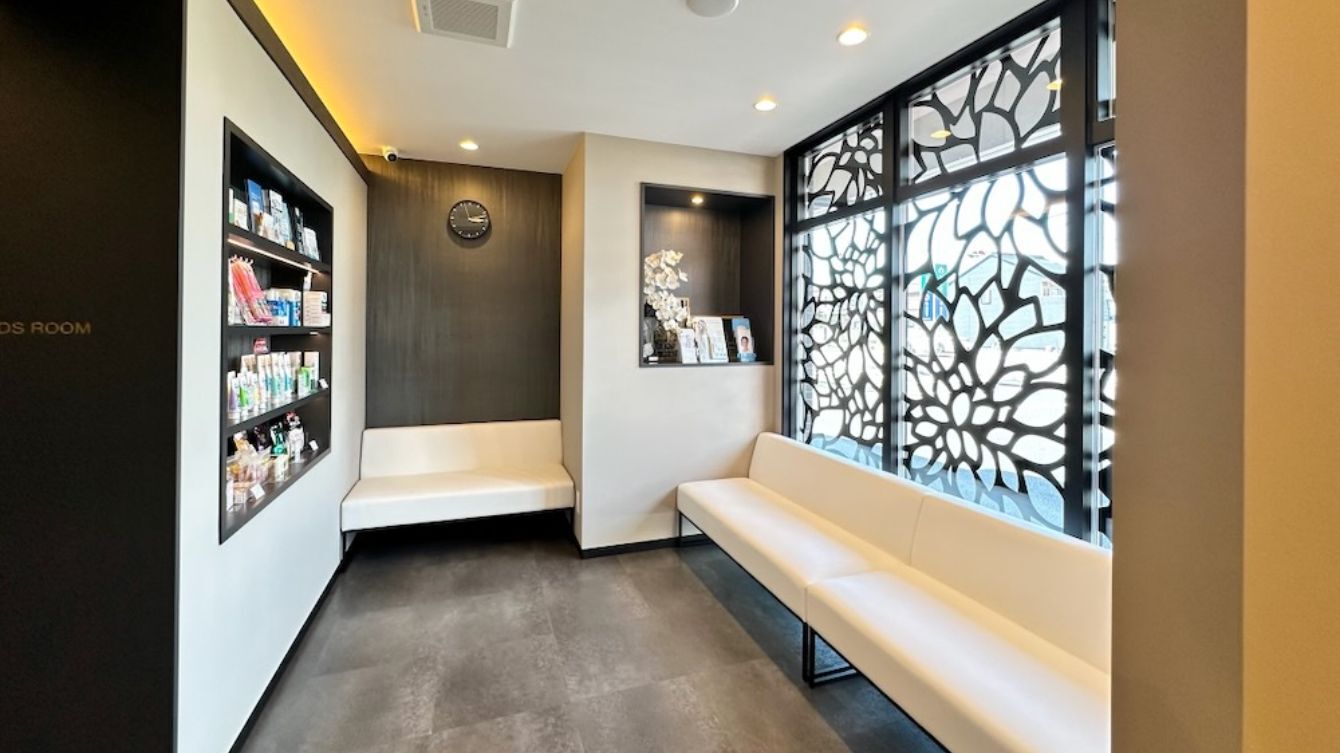 診療室はキュア(治療)ルームとケアルームに分かれており、キュアルームでは虫歯治療をメインに行います。キュアルームは海外のリゾートホテルのイメージで白とグレージュ、ブラウンを基調に上品で落ち着いた内装で安心して治療を受けて頂けるように配慮しています。プライバシーを配慮して個室にしていますが部屋の間にブラインドを設置し、お子様と御家族の隣同士の処置の時にはブラインドを上げて安心して処置を受けられるようにしています。