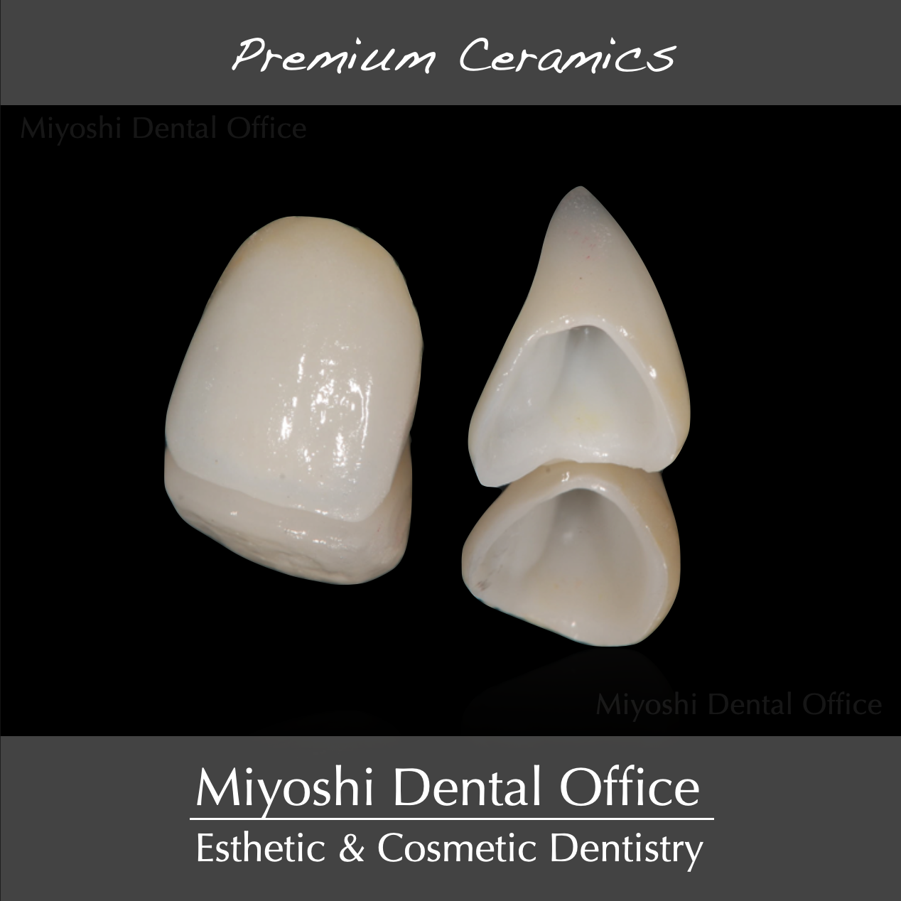 すべてセラミックスでできており、色と透明感に最も優れます。長期的に色と光沢が変わらないとても綺麗な歯です。金属アレルギーの心配もなく、自分の歯にそっくりな物をお望みの方におすすめです。