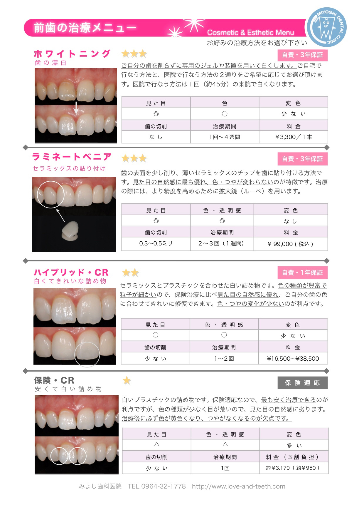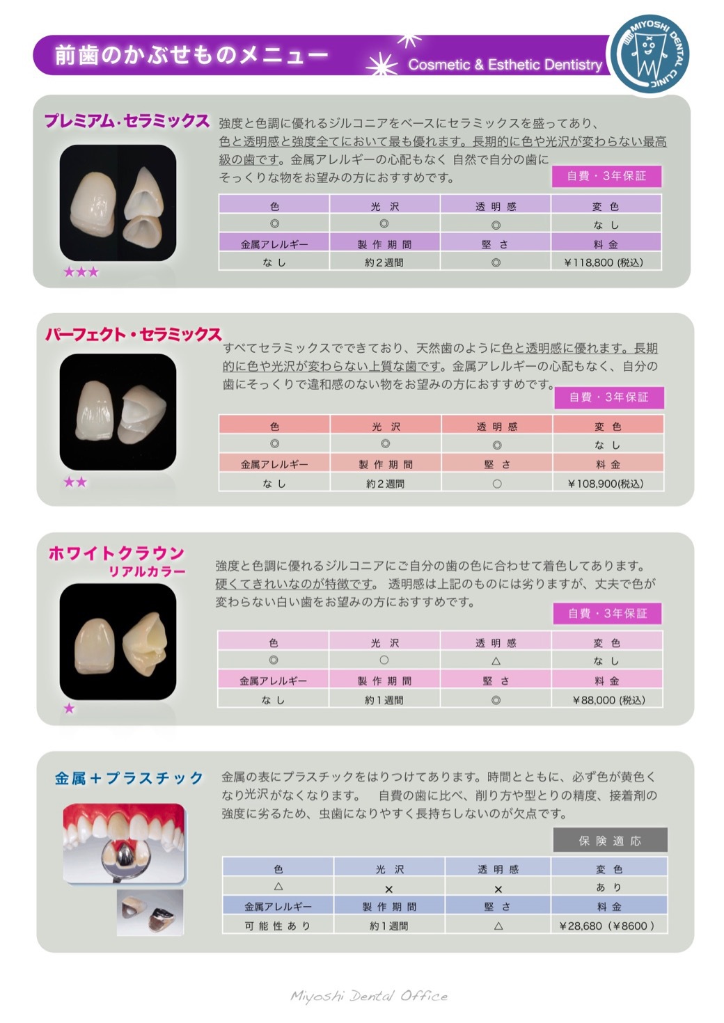 *上記メニューはすべて自費治療の料金(税込)となります。