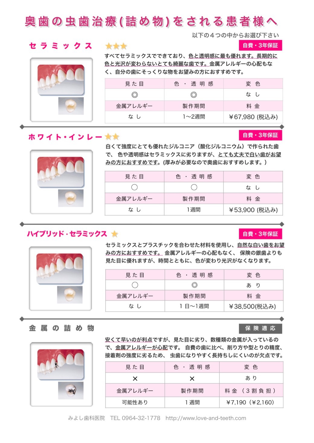 *上記詰め物メニューは自費治療(税込)です。
