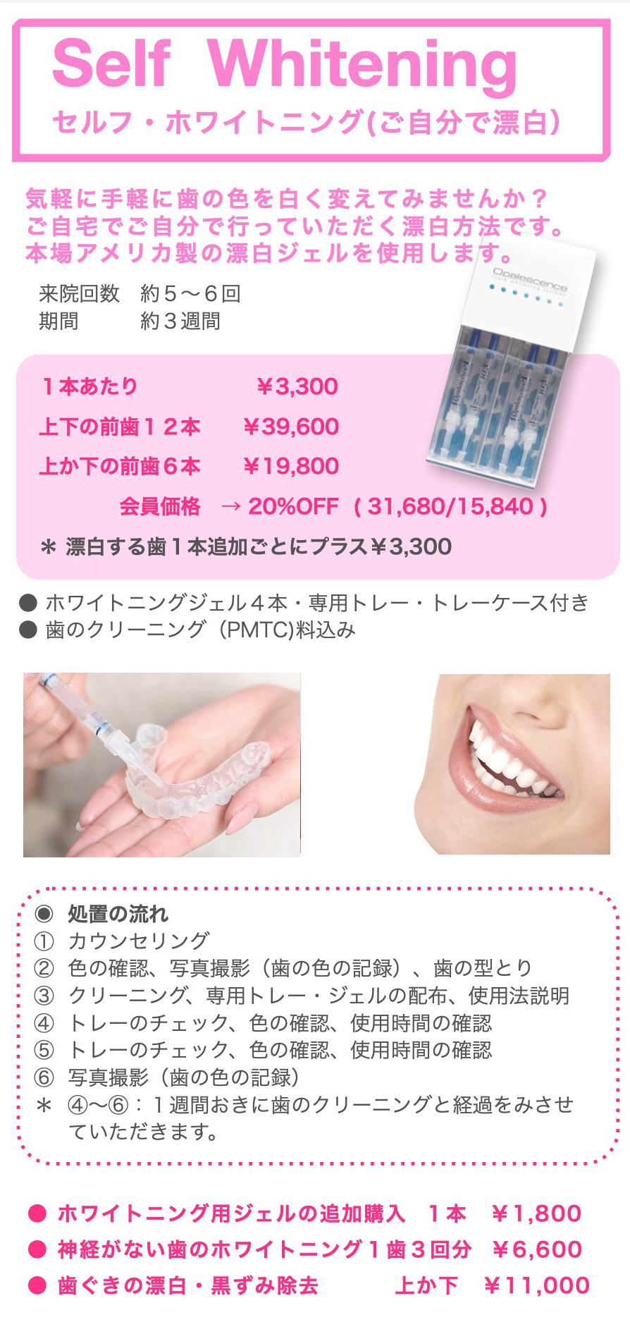 * 漂白する歯1本追加ごとにプラス¥3,300